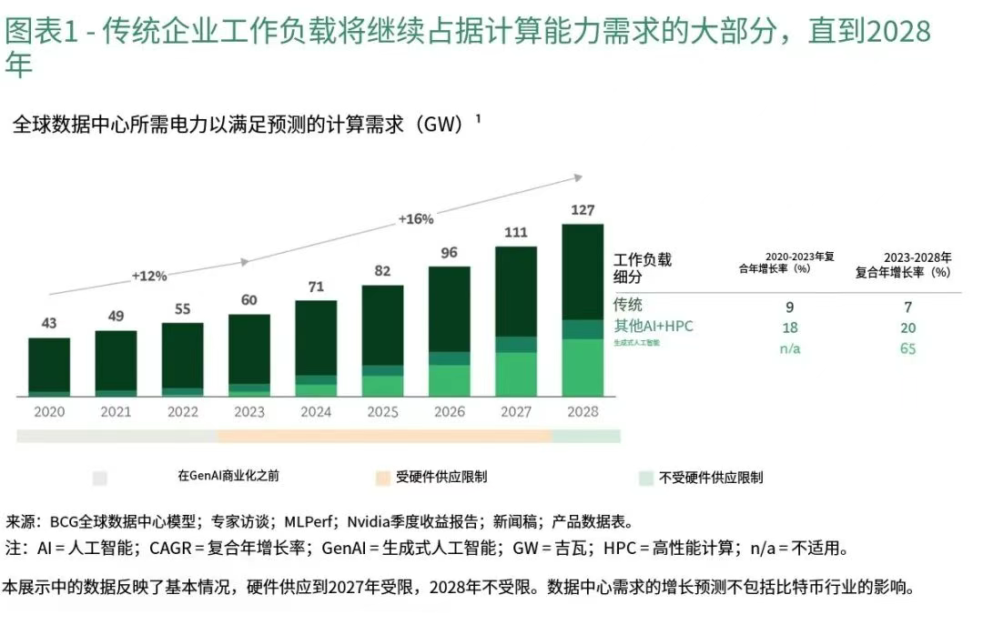 作为数字经济的核心基础设施,数据中心不仅支撑着各类云服务,也推动着包括生成式人工智能(GenAI)在内的新兴技术发展。根据波士顿咨询公司(Boston Consulting Group)在2025年发布的报告《突破数据中心增长壁垒》,由GenAI驱动的计算需求正成为增长最快的动力来源,在2023至2028年间,预计将占数据中心能耗增长总量的近60%。这种需求的急剧增长,正在推动全球数据中心基础设施迅速扩张与部署。同期,全球数据中心市场也有望实现稳健增长。